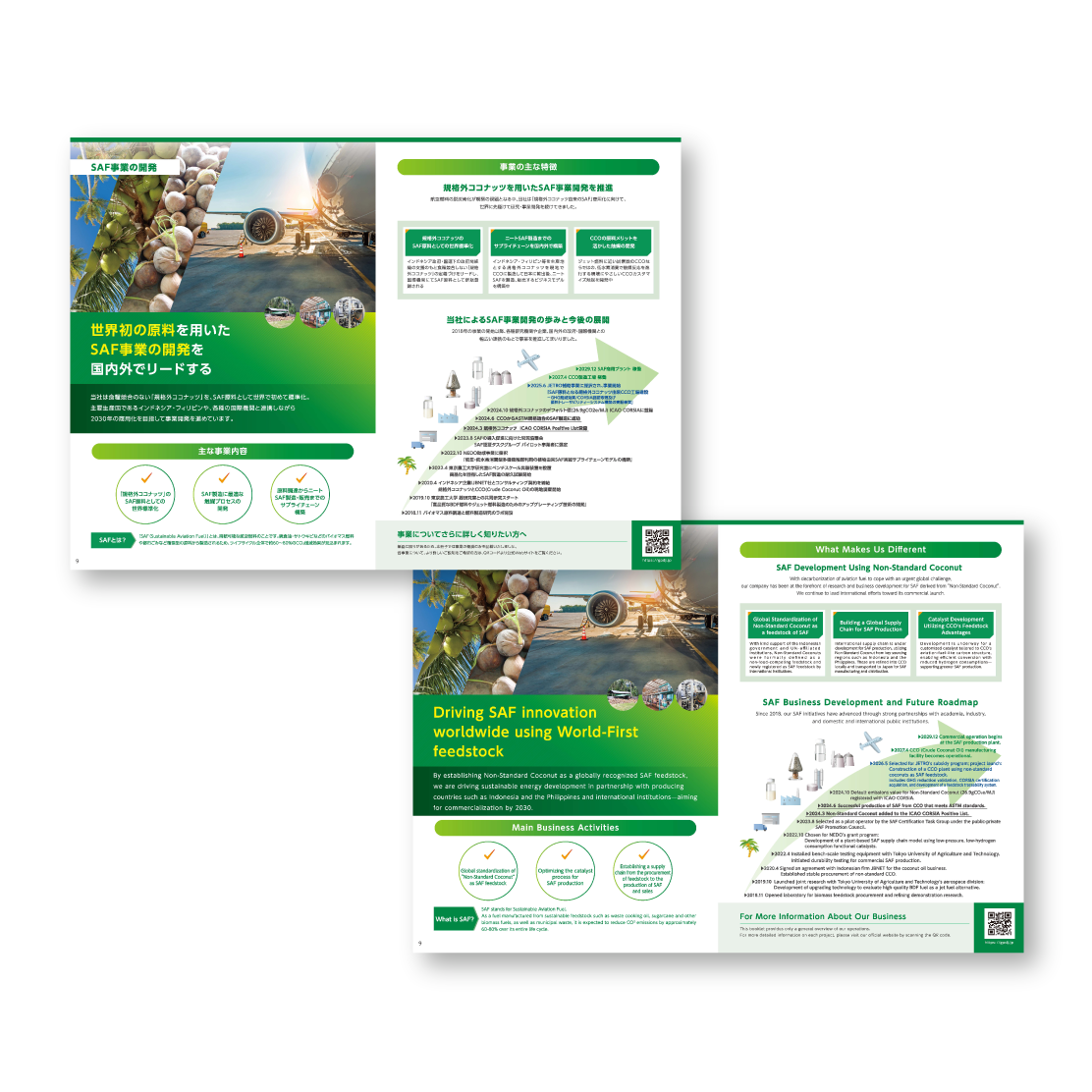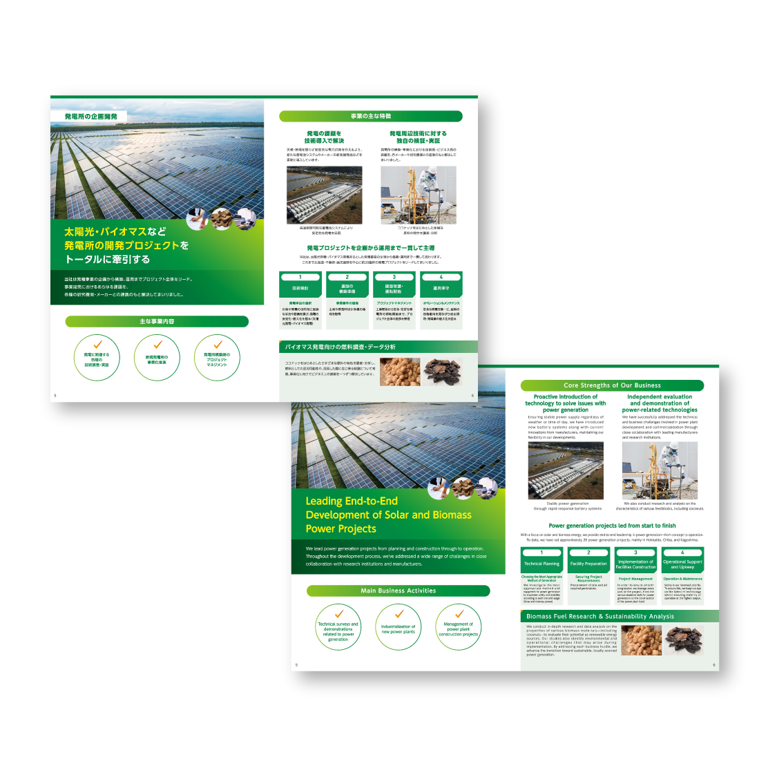 日本語版・英語版ともに、環境への配慮や技術力、信頼感が伝わるよう、